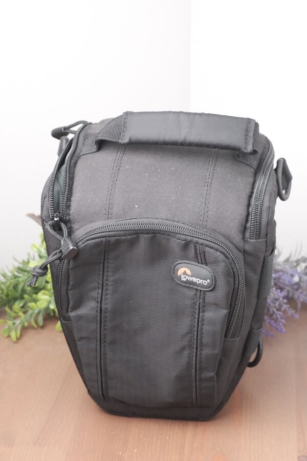 Comes as shown with the body, strap, battery, 128GB SD card, and small camera bag. Sorry, no charger, lens, etc.