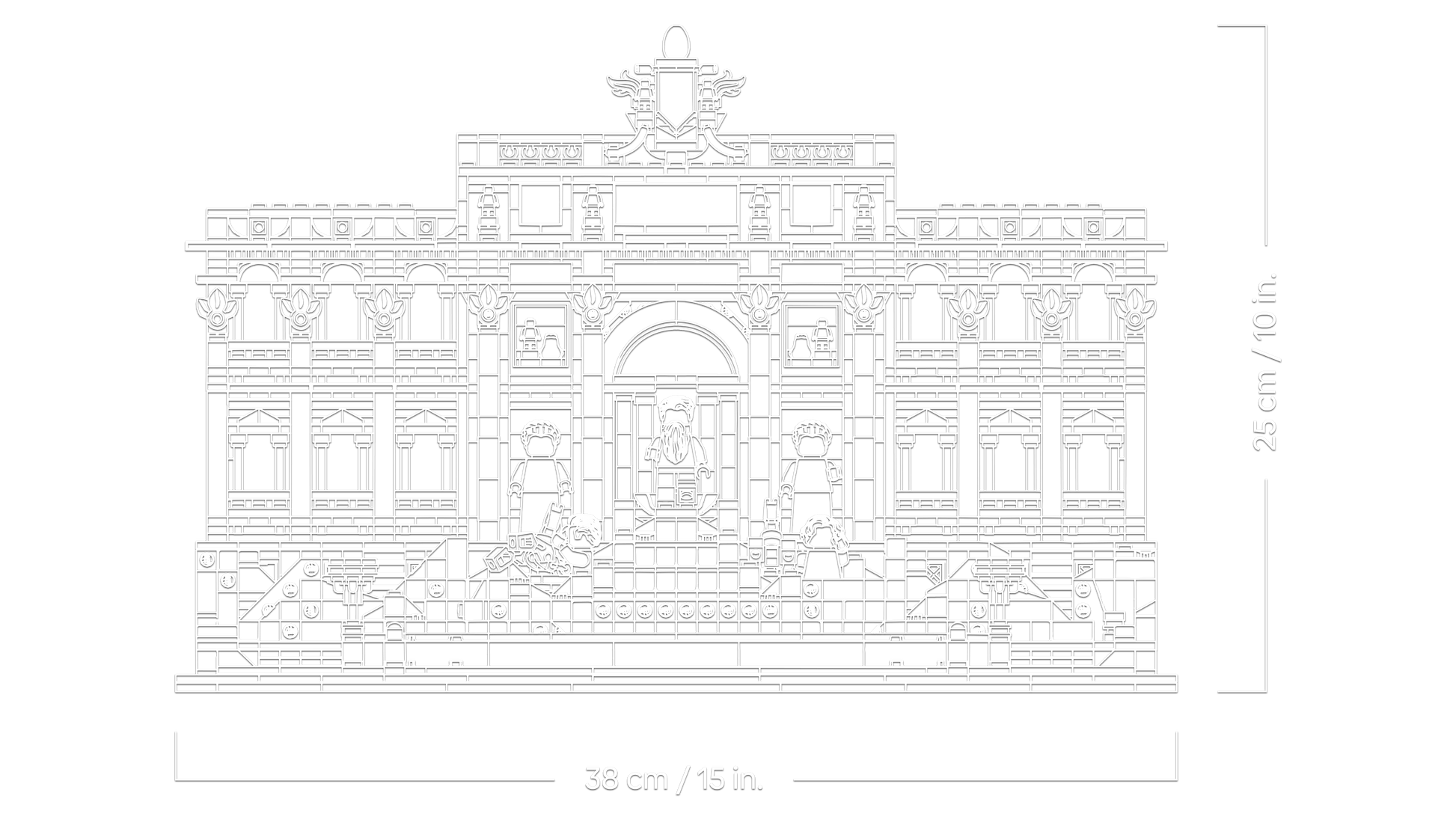 Authentically detailed model – Admire the facade’s backdrop, the details of the statue figures, mini hippocampi and small ’Lovers’ Fountain’, plus other items that enhance and complete the model