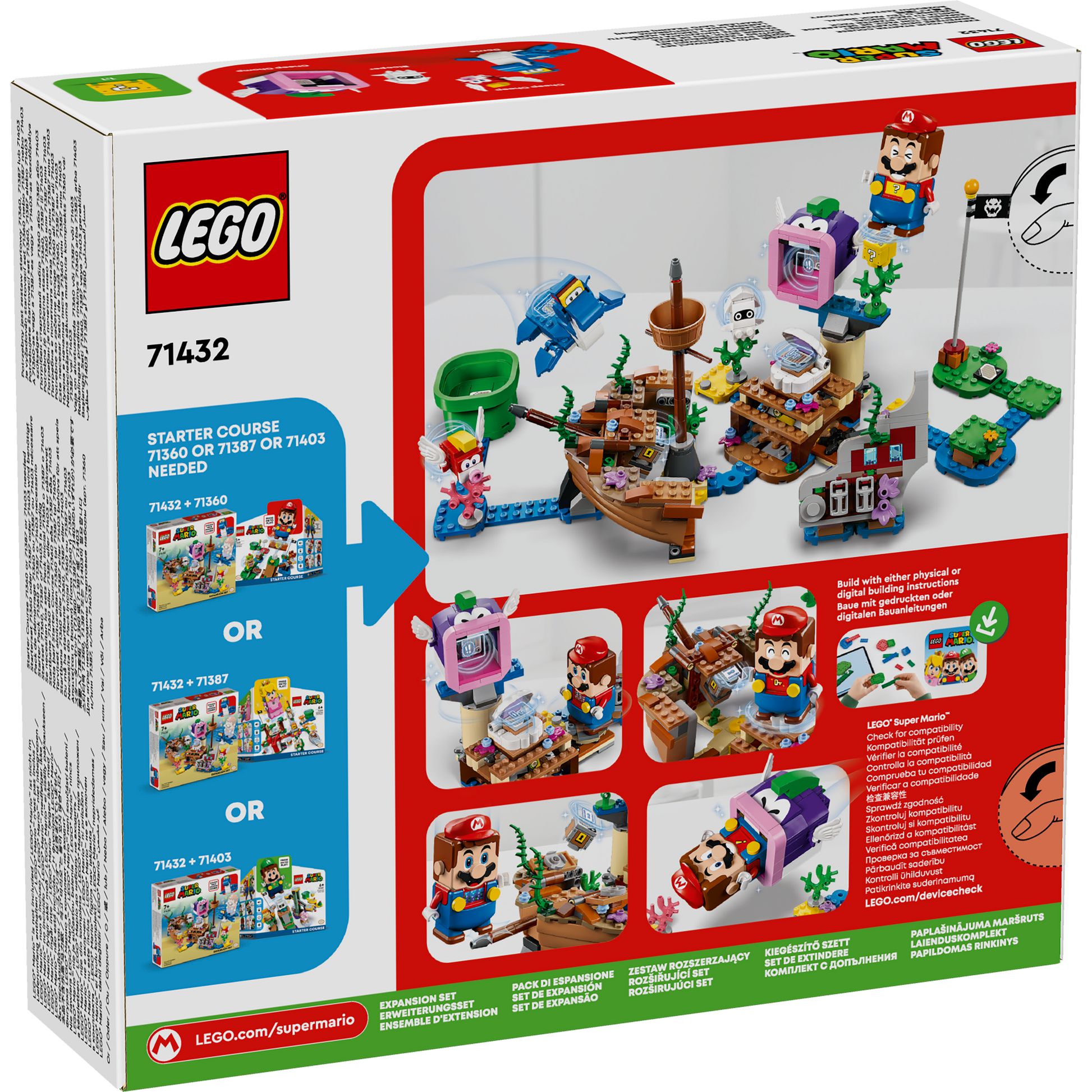 Create an exciting LEGO® Super Mario™ underwater level for a treasure hunt with Dorrie's Sunken Shipwreck Adventure Expansion Set (71432). Ride on a Dorrie with an interactive LEGO® Mario™, LEGO® Luigi™ or LEGO® Peach™ figure (figures not included) and explore the shipwreck. Note: the 71360, 71387 or 71403 Starter Course is required for interactive play.