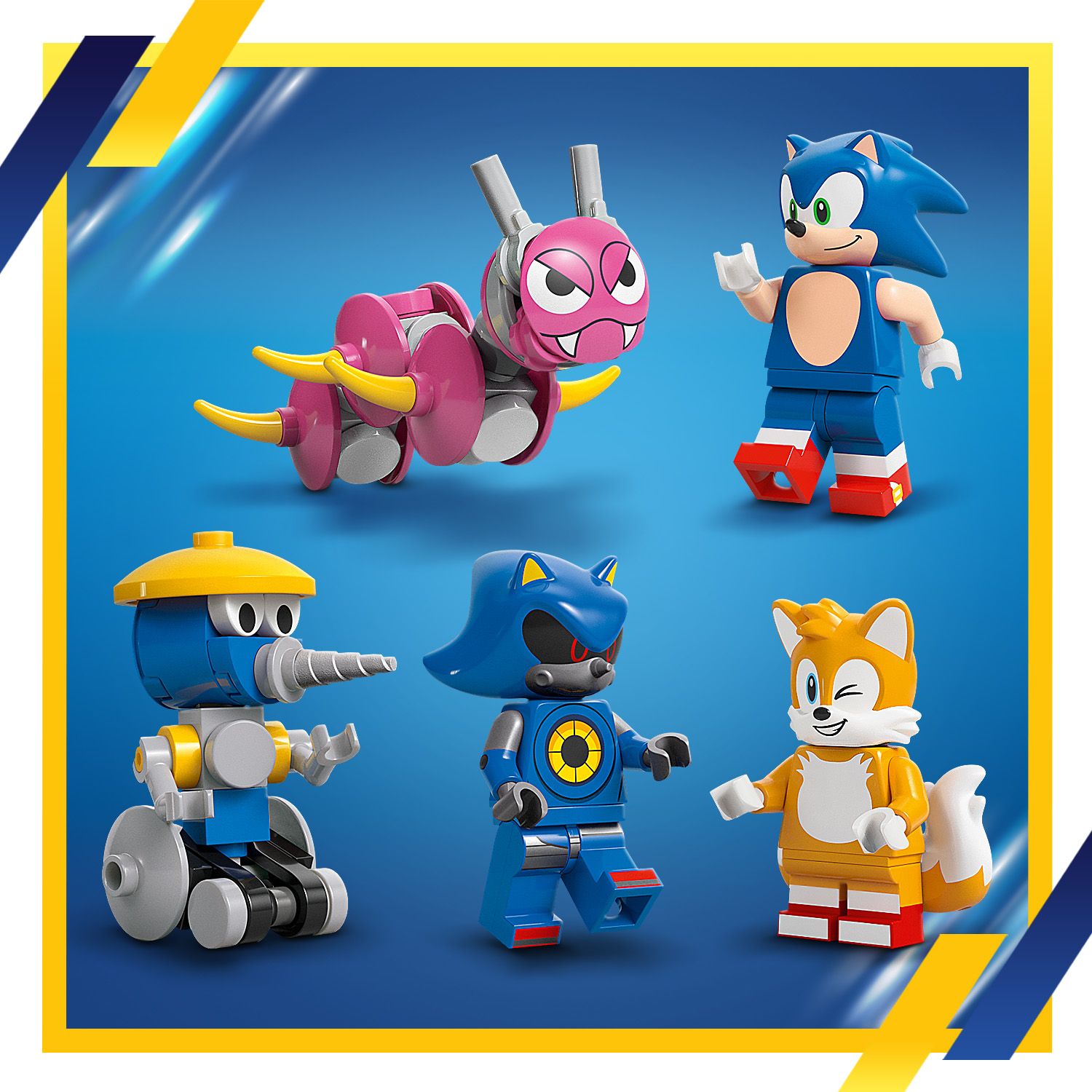 The action’s inside – Features Sonic, Tails and Metal Sonic LEGO® minifigures, Burrobot and Caterkiller figures and a truck with a cabin, storage area and a ramp for an ATV toy