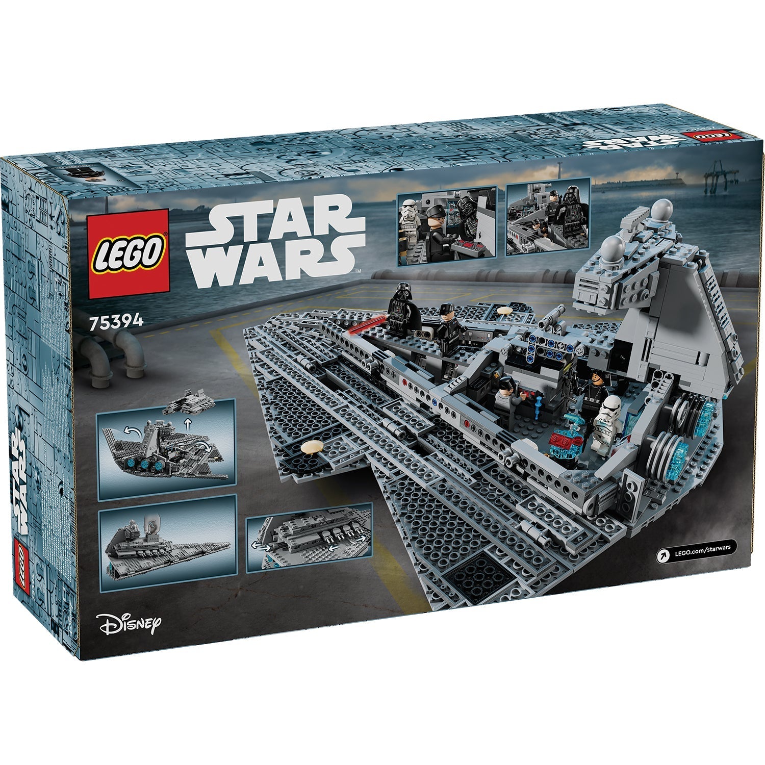 Dominate the galaxy with this LEGO®Star Wars™ Imperial Star Destroyer buildable toy starship playset for kids (75394). A cool birthday gift for boys, girls and fans aged 10 and up, thisStar Warsstarship building toy features a hidden foldout carry handle for flying and 2 spring-loaded shooters, with a lift-off top panel and foldout side panels for easy access to the detailed interior. Playful details inside include the bridge, command room, break room, armory, control panels and cargo box with thermal detonator elements.