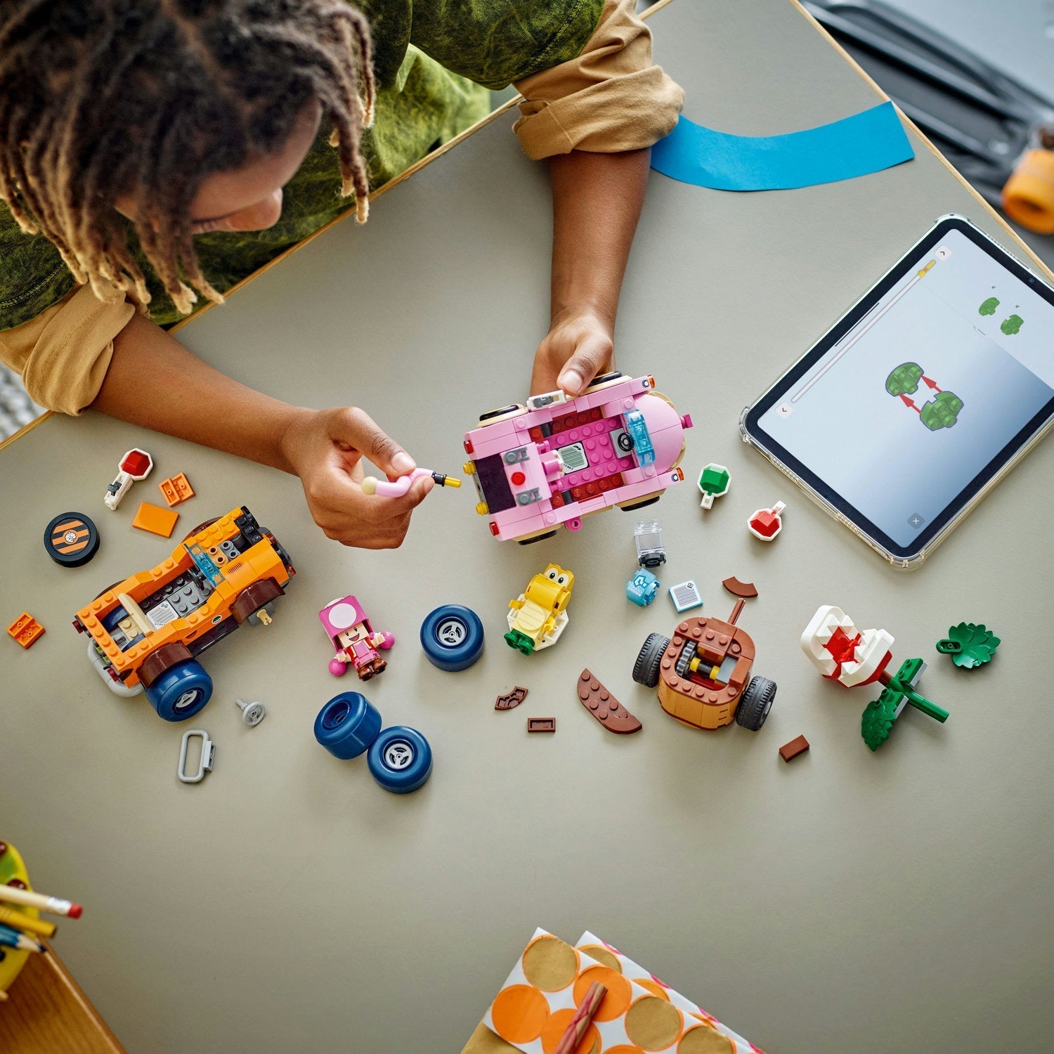 Team up with Toadette or the Koopa Troopa for a Piranha Plant Power-Up Pursuit with this Mario Kart™ toy building set for kids (72044). A top LEGO® Super Mario™ gift for boys, girls and gamers aged 8 and over, the set features detailed buildable models of Toadette in the Cat Cruiser and a Koopa Troopa in the Tanooki Kart for pretend play. Each kart has drifting action and shell-launching function. Attach the Piranha Plant figure to either kart and see how it moves when the kart is in motion.