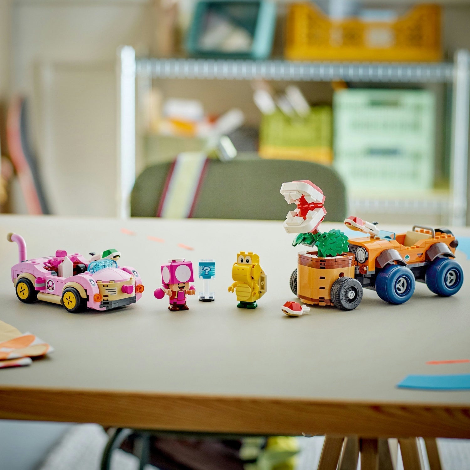 • LEGO® Super Mario™: Mario Kart™ toy playset for kids – Play out a thrilling Piranha Plant Power-Up Pursuit with a Koopa Troopa in the Tanooki Kart and Toadette in the Cat Cruiser