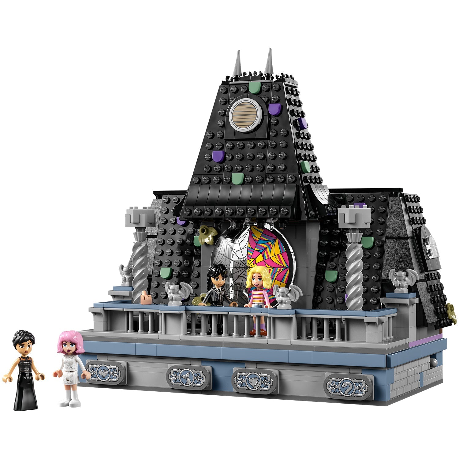 • Nevermore Academy set – The school playset includes a buildable dorm room with a spiderweb window that opens, a base with buttons that open secret drawers and a balcony with 4 gargoyles