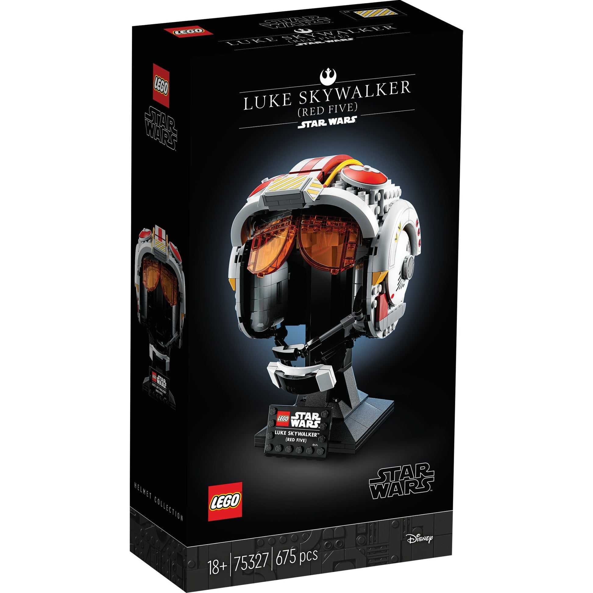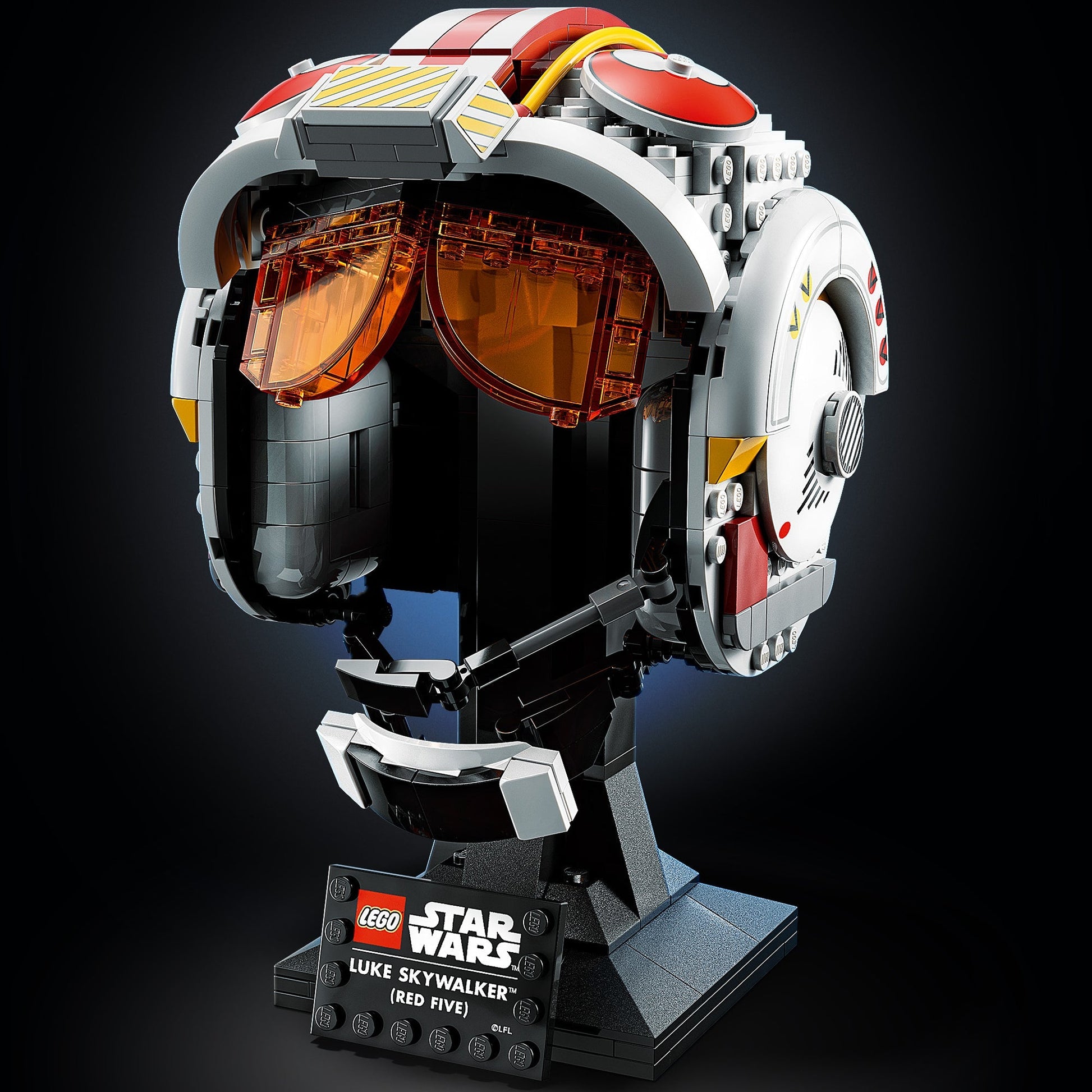 Feel the power of your creative Force as you build the collectible Luke Skywalker (Red Five) Helmet (75327). This buildable model of Luke’s iconic pilot headgear is the first-ever hero helmet or open helmet in the LEGO® Star Wars™ collection. Channel your inner Jedi to recreate authentic details, including a brick-built microphone and interior padding, plus translucent red visor elements. Add the integrated stand with nameplate to complete a striking display piece.
