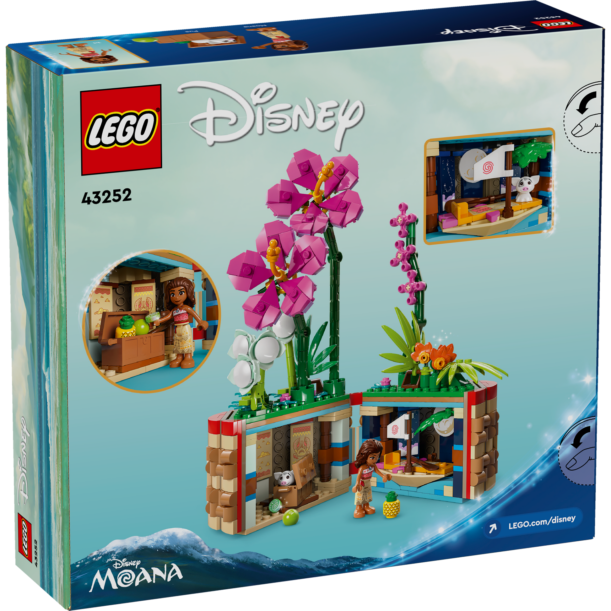 • Creative options – The building toy includes an opening flowerpot with a 'woven' basket design, flowers, a Moana LEGO® ǀ Disney mini-doll figure and Pua LEGO ǀ Disney pig figure