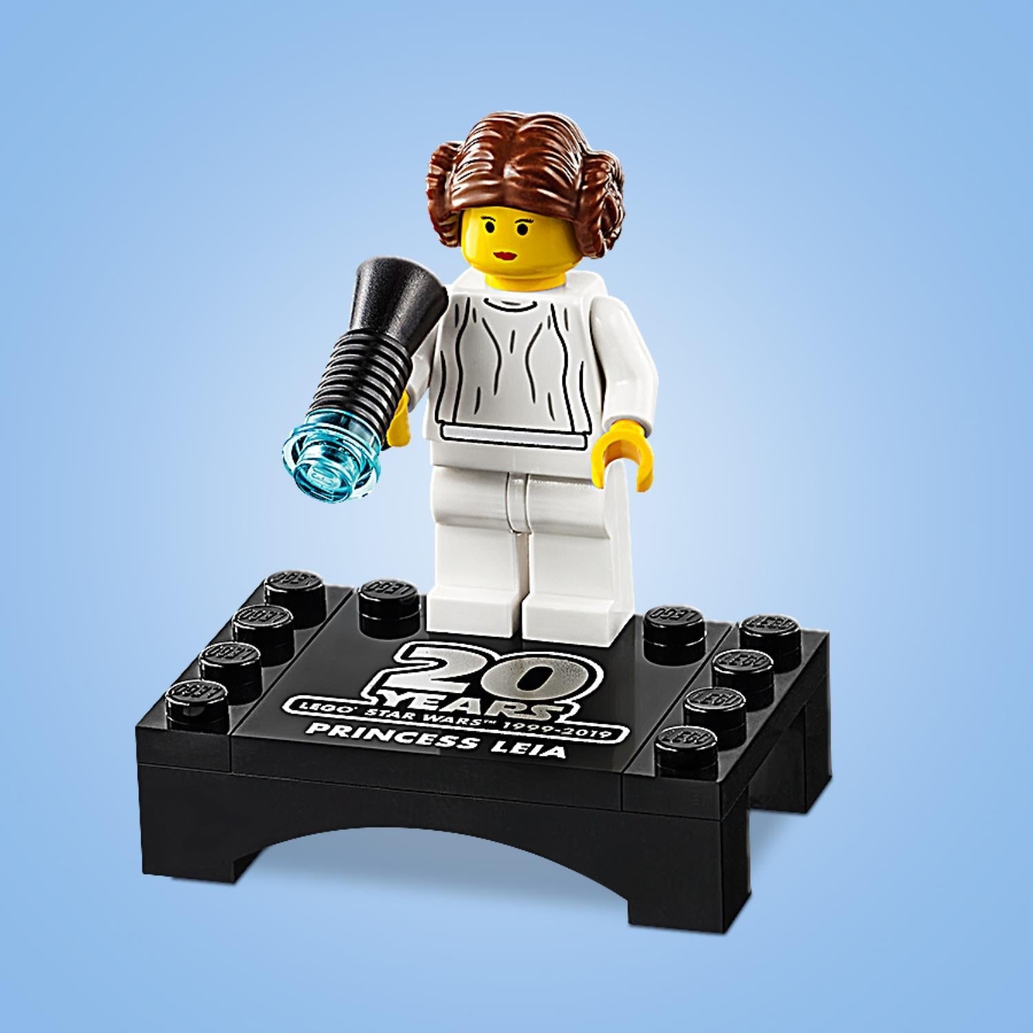 • Princess Leia minifigure is a faithful representation of the original version from 2000 and includes a 20th anniversary logo.